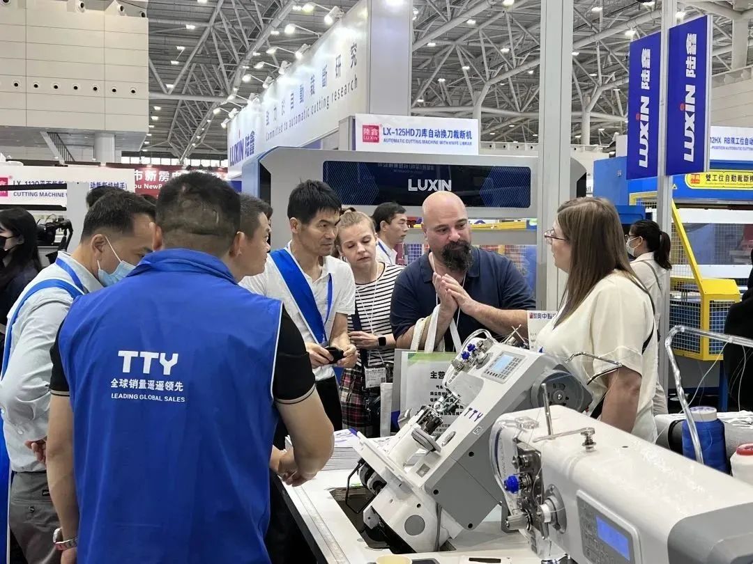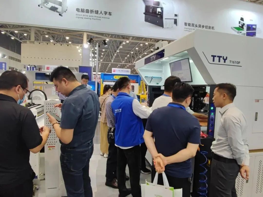 開展當日,氣氛熱烈,接踵而至的觀展人潮爭相涌入杰羽科技的展臺,現(xiàn)場展示了電腦羅拉車、程式控制電子花樣機、雙頭智能異步切割機和視覺激光噴墨畫線機一系列工業(yè)縫紉機,并以超高顏值吸引眾多觀展人員紛紛駐足。