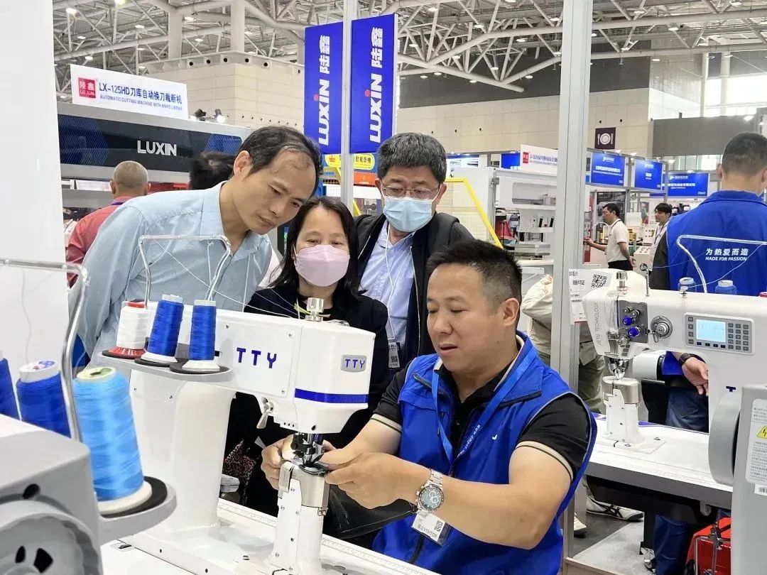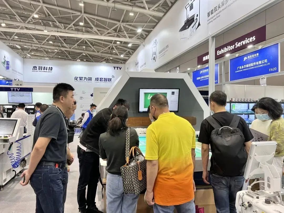 開展當日,氣氛熱烈,接踵而至的觀展人潮爭相涌入杰羽科技的展臺,現(xiàn)場展示了電腦羅拉車、程式控制電子花樣機、雙頭智能異步切割機和視覺激光噴墨畫線機一系列工業(yè)縫紉機,并以超高顏值吸引眾多觀展人員紛紛駐足。