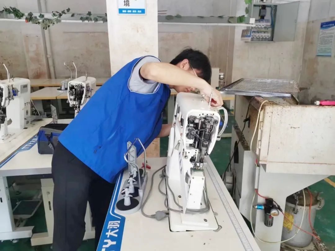 排查機(jī)器受損情況,清理機(jī)器,調(diào)試檢修,換油,服務(wù)人員不敢怠慢任何細(xì)節(jié),認(rèn)真檢查每一臺(tái)縫紉設(shè)備的情況,對(duì)受損設(shè)備維修調(diào)試至可正常使用,并在此期間給他們講解縫制設(shè)備日常的保養(yǎng)知識(shí)、普及常見(jiàn)問(wèn)題的解決辦法。