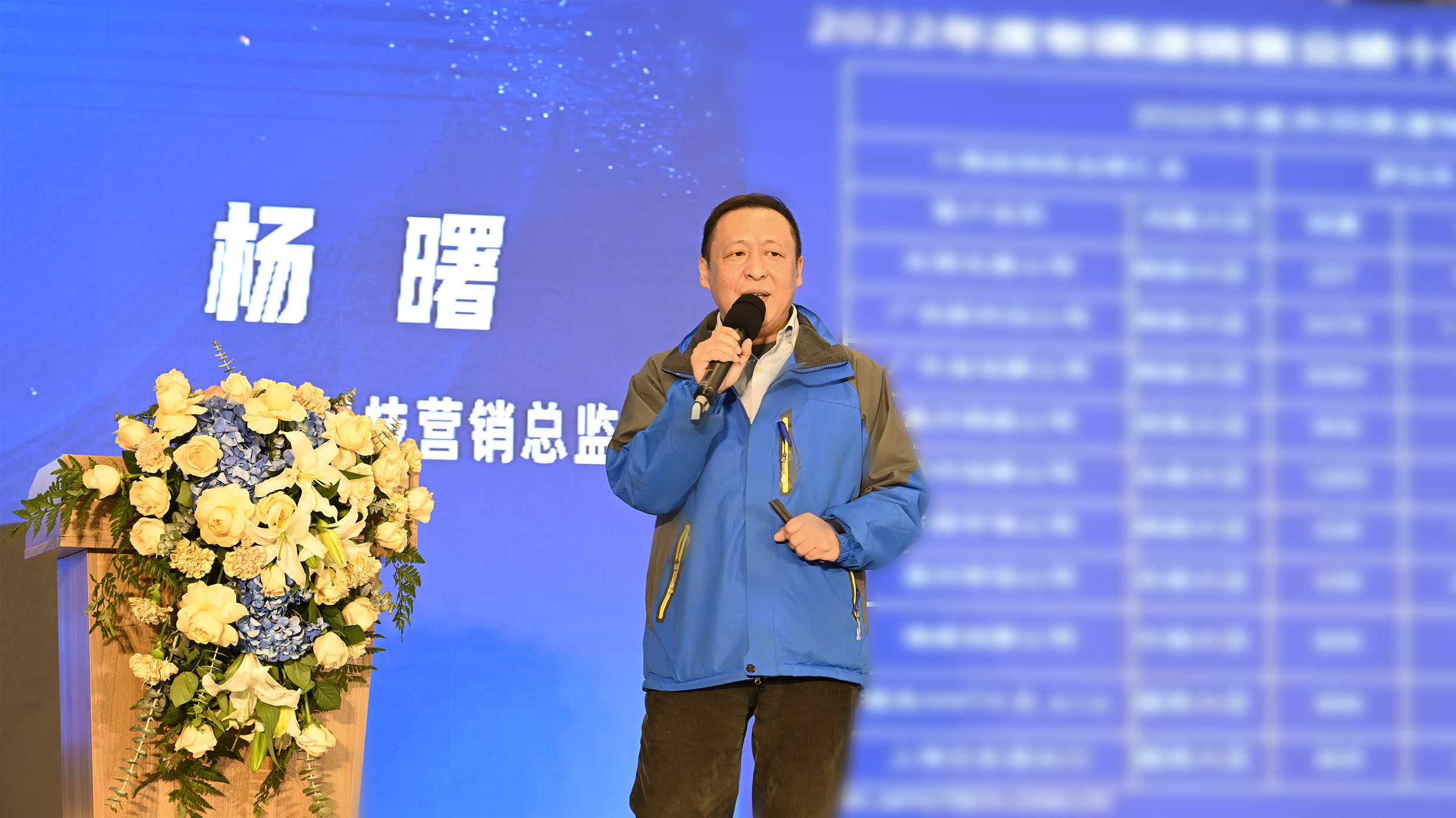 營銷中心總監(jiān)楊曙先生就《2022年業(yè)績回顧與2023年展望》為主題展開分享,他指出2022年整體市場相對疲軟,但在全體經(jīng)銷商家人們的共同努力下,依舊取得了不錯的成績,感謝各位經(jīng)銷商家人們的辛苦付出。在分享過程中,向大家展示了兩位優(yōu)秀經(jīng)銷商家人的經(jīng)驗分享視頻并進行現(xiàn)場連線。