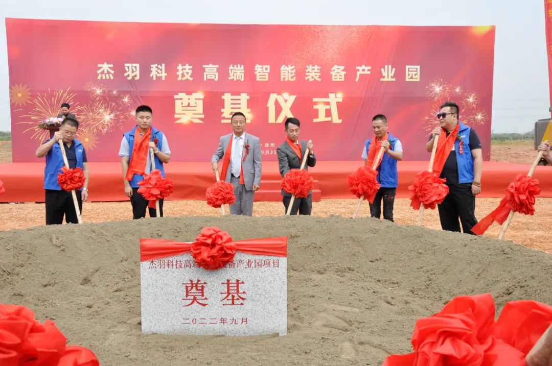 2022年9月25日上午9時(shí)18分, 良辰吉日,天降吉祥。伴隨著喜慶的禮炮聲以及挖掘機(jī)的陣陣轟鳴聲,杰羽科技高端智能裝備制造產(chǎn)業(yè)園奠基儀式在項(xiàng)目工地隆重舉行!